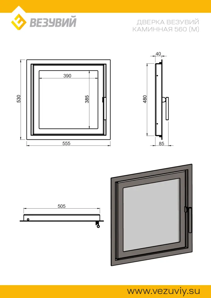 —Дверка ВЕЗУВИЙ каминная 560 (М) Антрацит