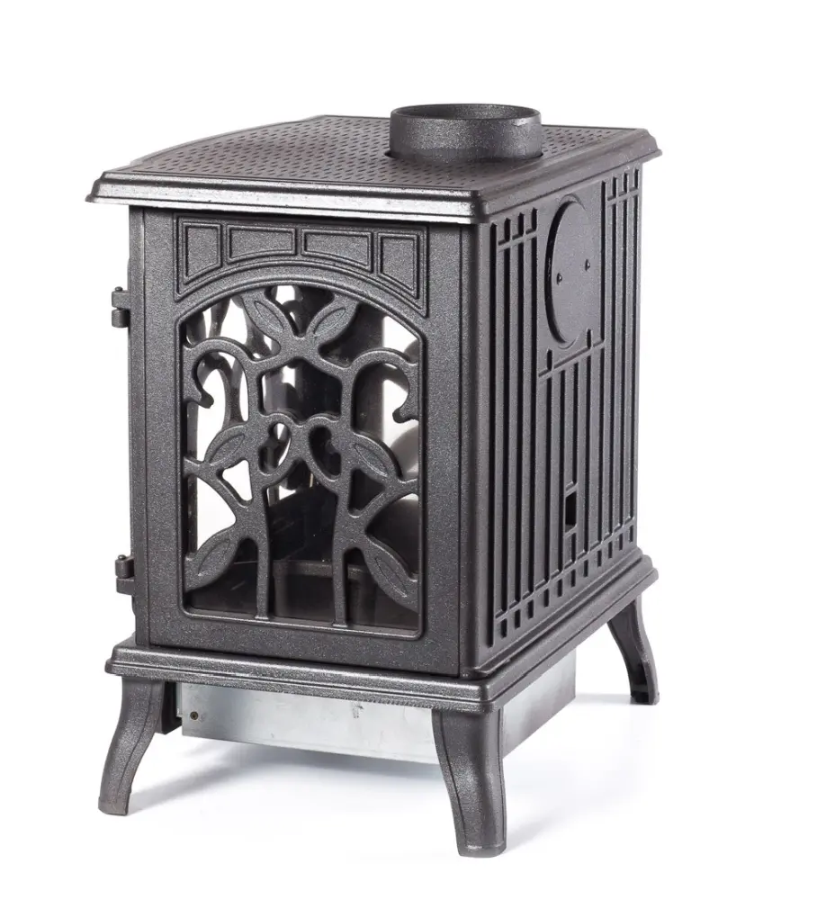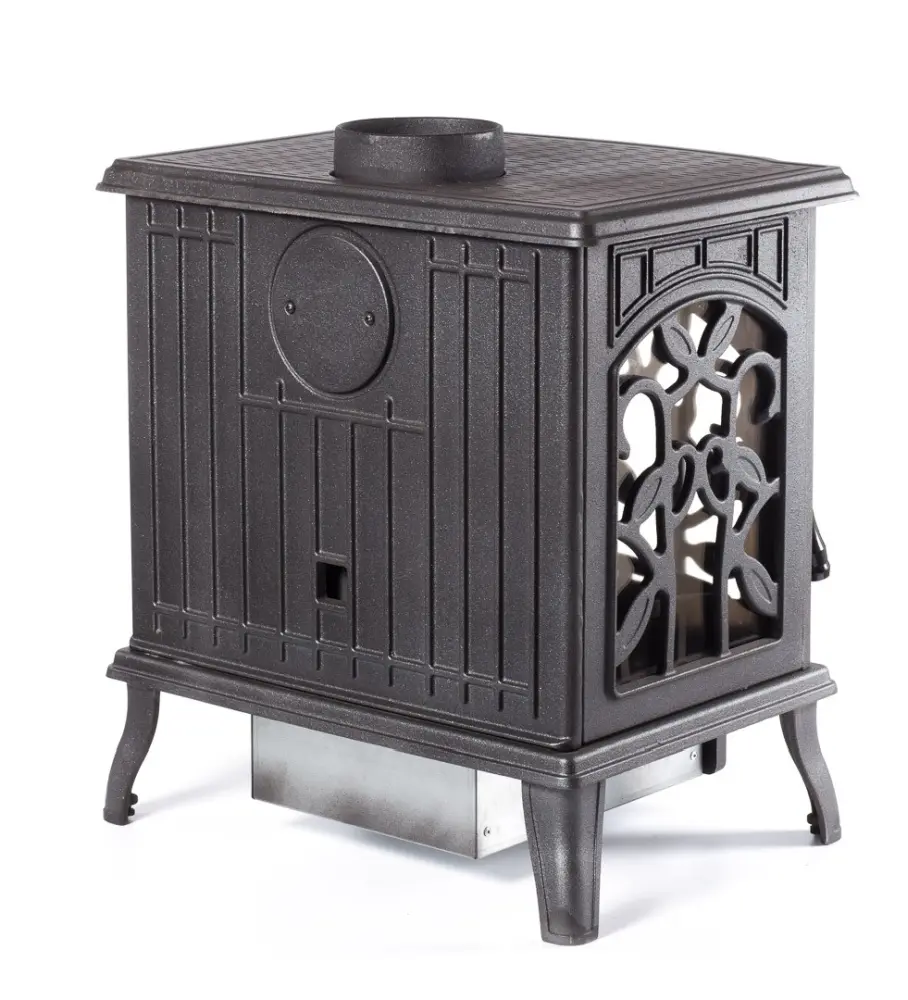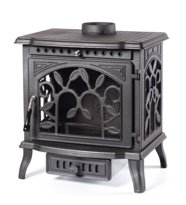 Печь-камин Demetre от российского бренда FireWay - это не просто отопительный прибор, это эффектный предмет интерьера. Трехстороннее остекление, защищенное ажурной решеткой с растительным орнаментом, притягивает взгляд к пламени, в какой бы части помещения вы не находились. Печь выглядит очень легкой и изящной, тем не менее, сделана она из высококачественного литого чугуна и весит 121 кг, то есть абсолютно функциональна и прекрасно подходит для обогрева помещений объемом до 200 куб. м.