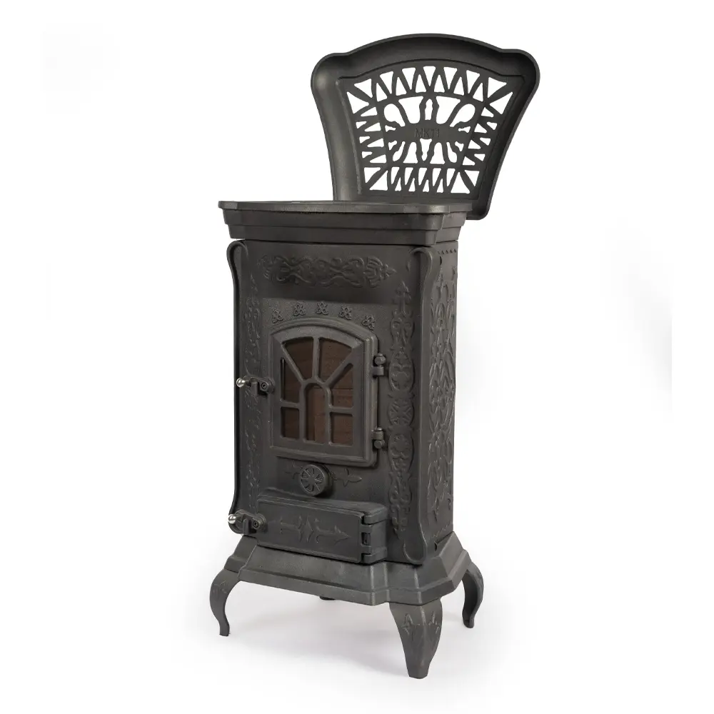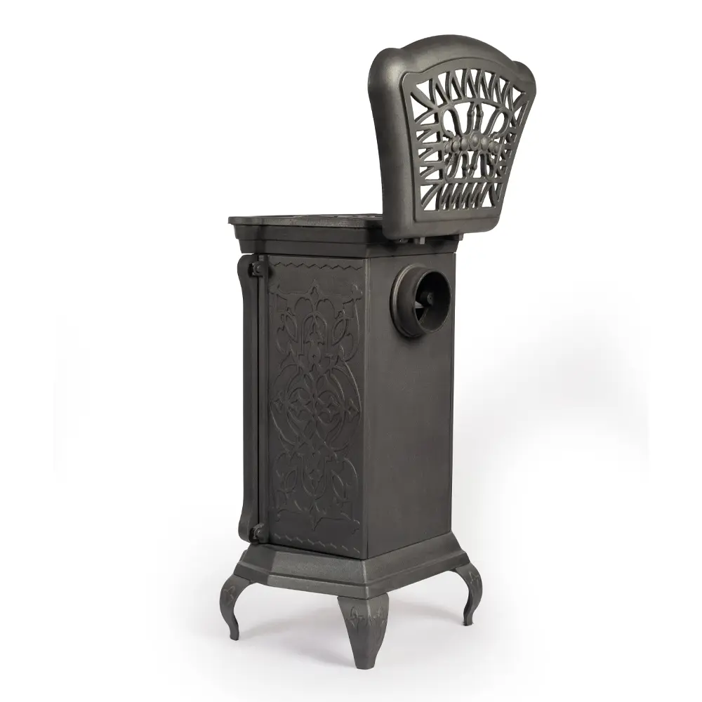 Изящная и компактная отопительная печь Step от российского бренда FireWay не оставит равнодушными любителей изящных решений в стиле шебби-шик, кантри и винтаж. Эта небольшая, полностью чугунная печка занимает минимум места, но неизменно привлекает внимание. Корпус печи покрыт выпуклым орнаментом, стекло дверцы оформлено решеткой, решетчатой сделана и верхняя крышка, которая в поднятом виде становится дополнительным элементом декора. Печка рассчитана на обогрев помещения объемом 110 куб. метров. Она отлично подойдет для использования в качестве дополнительного источника тепла.