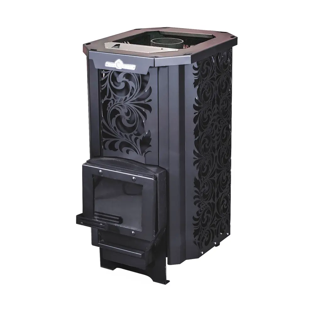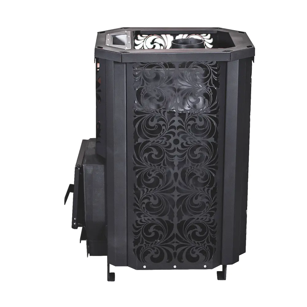 Топка изготовлена из конструкционной стали 09Г2С толщиной 6 мм. Печь «HARD» Хохлома оснащена закрытой каменкой из нержавеющей стали AISI 304, толщиной 3 мм, а так же имеет увеличенную по высоте топку, что позволяет эффективнее прогревать камни в закрытой каменке и парильное помещение.
