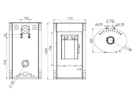 Благодаря высокой мощности (16 кВт) печь быстро прогреет помещение площадью до 150 кв.м, при этом за качество воздуха можно не беспокоиться - система внешнего воздухозабора позволяет забирать кислород, необходимый для горения, из соседнего помещения или с улицы. Дополнительно печь-камин оснащена теплообменником мощностью 5 кВт.