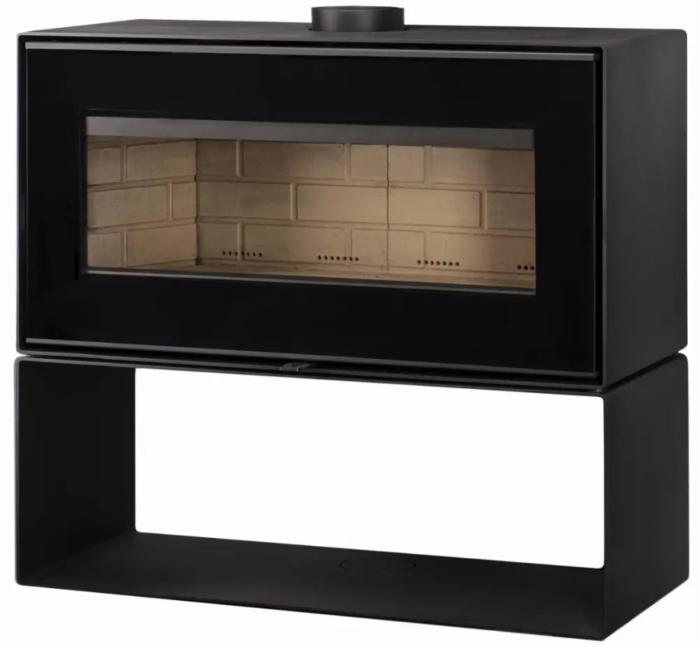 Печь-камин “Монблан” представляет собой объемную топку, защищенную металлическим кожухом. Изнутри она футерована вермикулитовыми пластинами, оформленными под кирпичную кладку. Топка вмещает поленья рекордной длины - до  80 см. Несмотря на солидные размеры и высокую мощность в 10 кВт, печь абсолютно безопасна в эксплуатации.