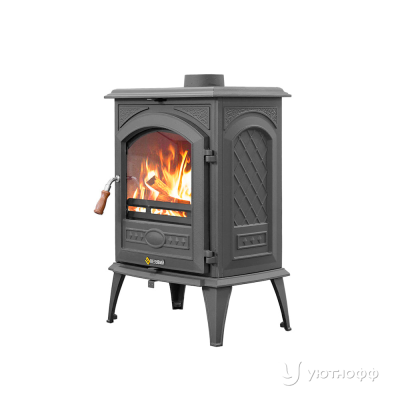 На поверхности печи-камина присутствует выступающий чугунный декор, который служит ребрами жесткости, защищая изделие от деформации.