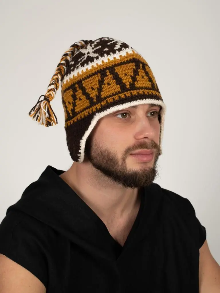 Шапка вязаная для бани Woodson Viking, орнамент, без косичек (коричневый)