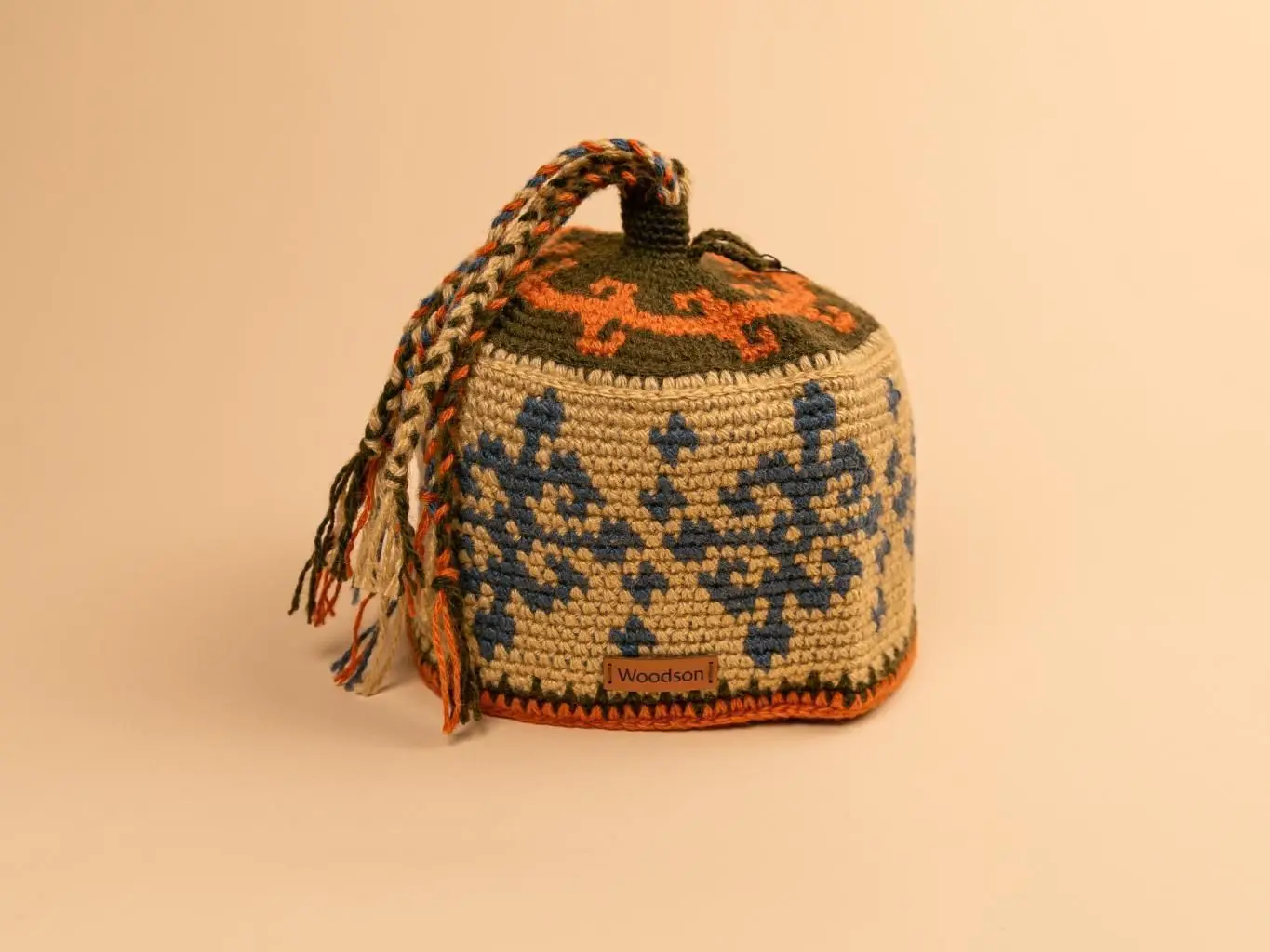 Вязаные шапка ручной работы в различных цветах и размерах  Изделие обеспечит защиту от перегрева головы в бане или сауне. Вязка достаточно плотная, а орнаменты выдержаны в цветовом решении ковриков Woodson. Шапки наилучшим образом поддаются стирке и сушке, не меняют размер после многократного использования.  Шапка упакована во влагозащитную и премиальную упаковку.